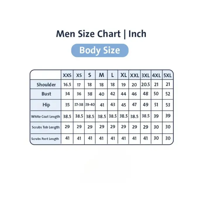 | Labcoat Size | XS or S or M or L or XL or XXL or 3XL or 4XL or 5XL |